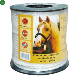 Les fils conducteurs sont fréquemment utilisés dans les clôtures électrifiées pour moutons. Il s'agit d'une corde en matière plastique avec des filaments métalliques de cuivre étamé ou d'aluminium qui conduisent l'électricité.
